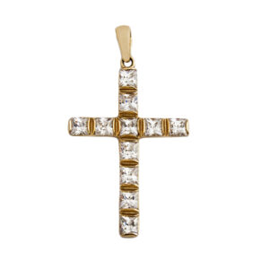 Krzyż z białego złota z cyrkoniami – 2,400 g
