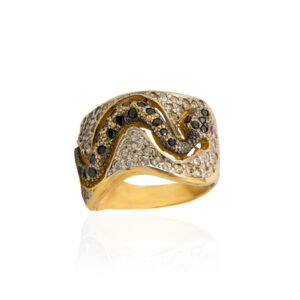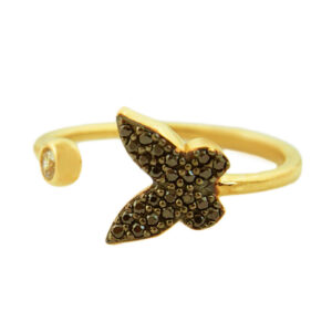 Złoty pierścionek motyl z onyksami – 2,600 g