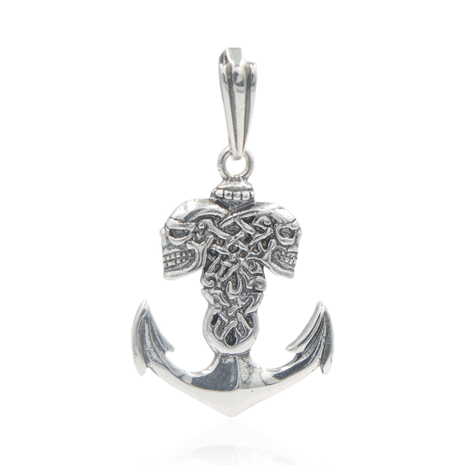 Srebrny męski wisiorek kotwica i czaszki