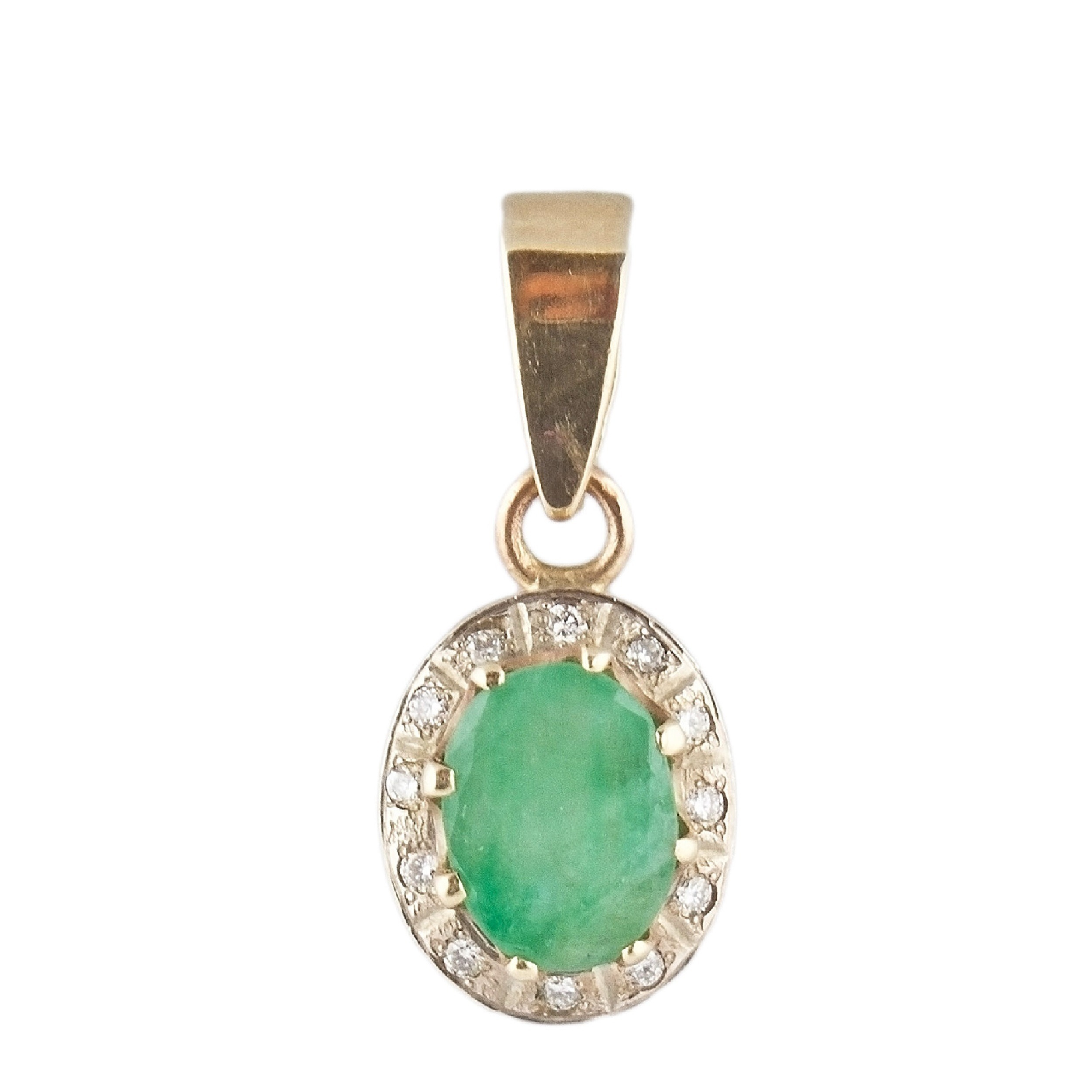 Złota zawieszka w formie markizy z wysokiej jakości brylantami oraz naturalnym szmaragdem