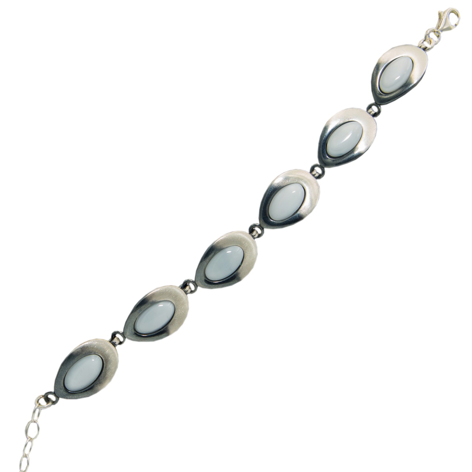 SREBRNA BRANSOLETKA Z BIAŁYM AGATEM