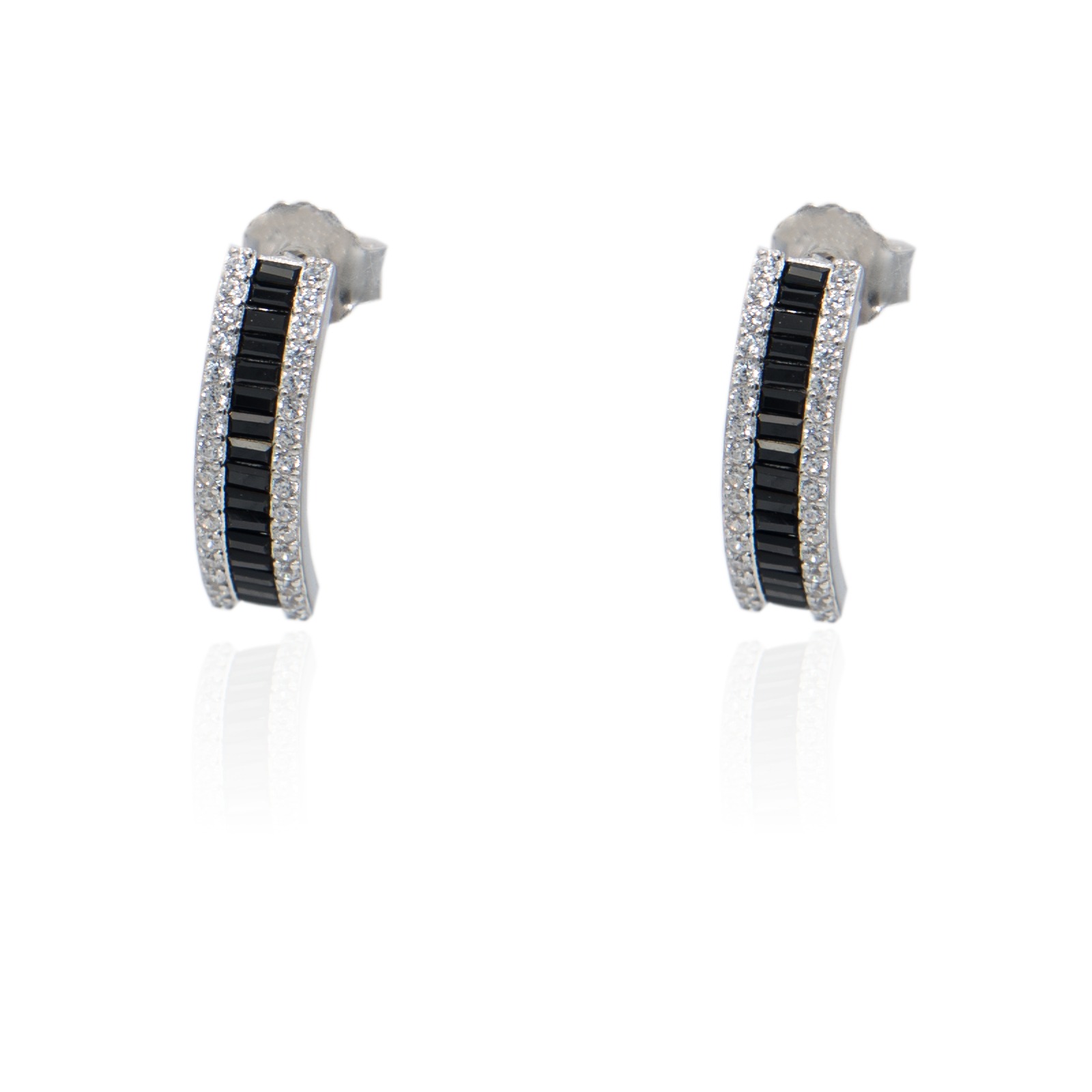 SREBRNE KOLCZYKI Z ONYKSAMI I CYRKONIAMI