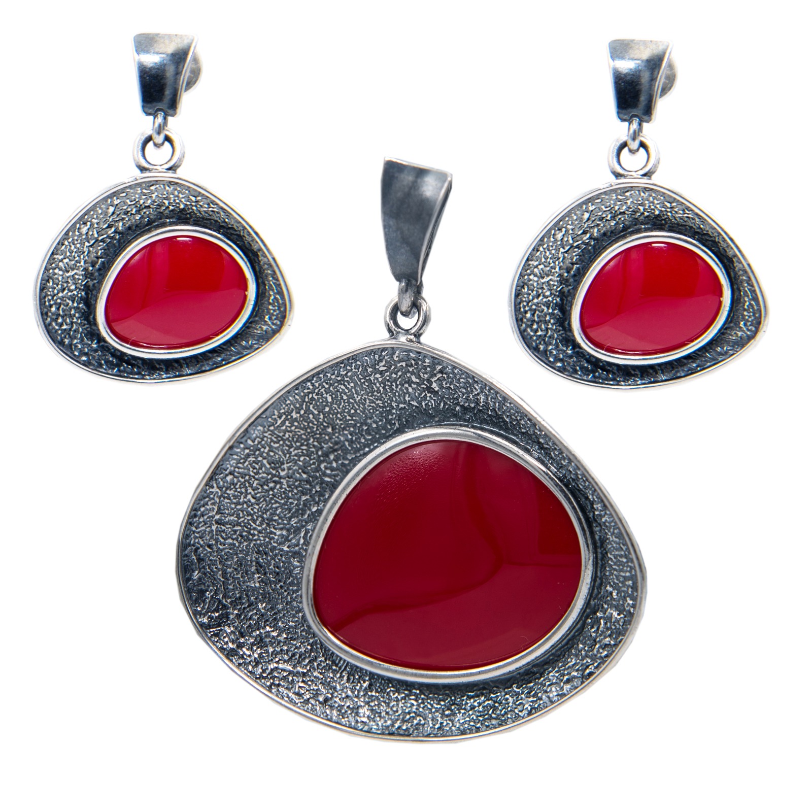 SREBRNY NIEPOWTARZALNY KOMPLET Z KORALOWCEM