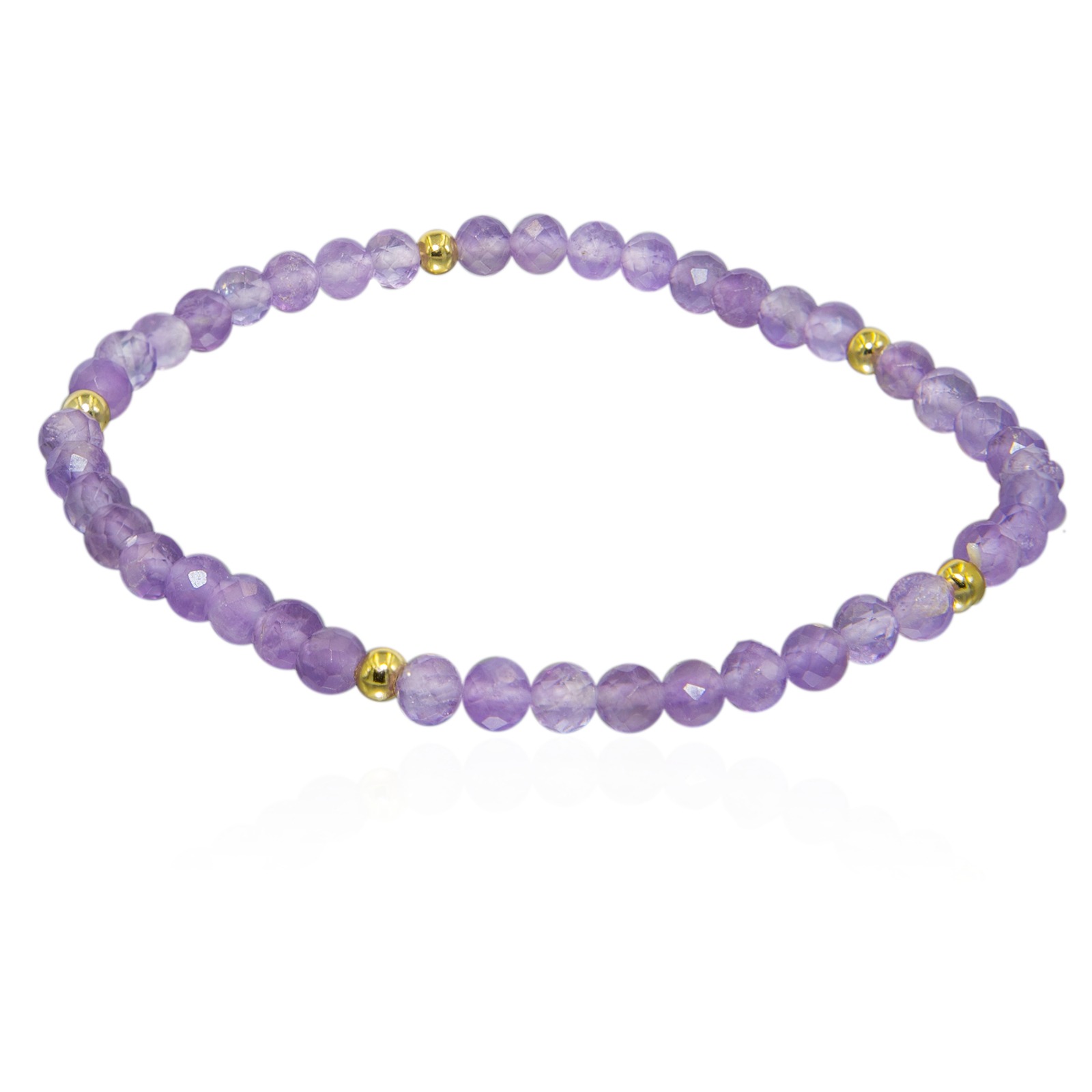 Bransoletka na gumce z ametystem i pozłacanymi kulkami