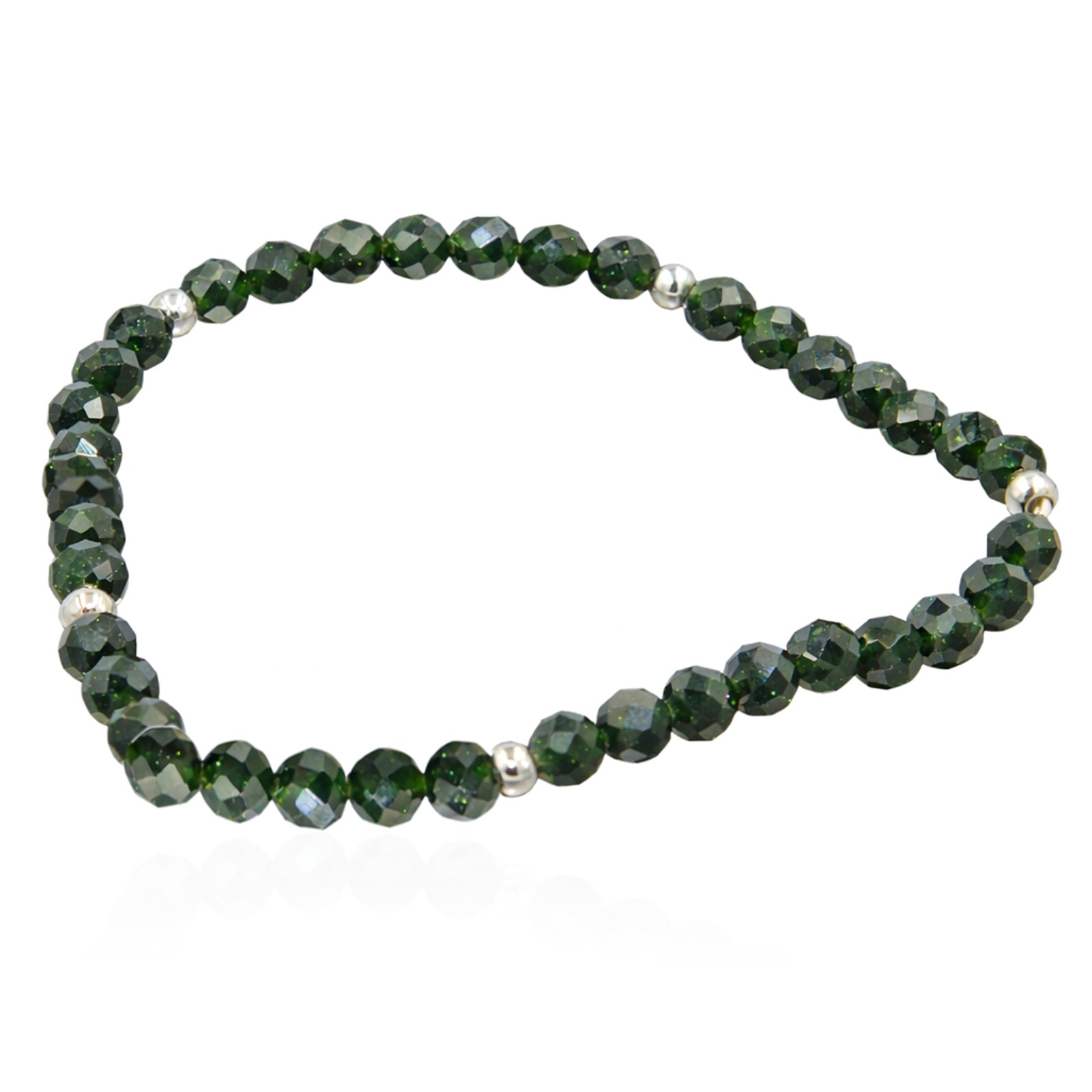 BRANSOLETKA NA GUMCE Z ONYKSEM ORAZ SREBRNYMI KULKAMI