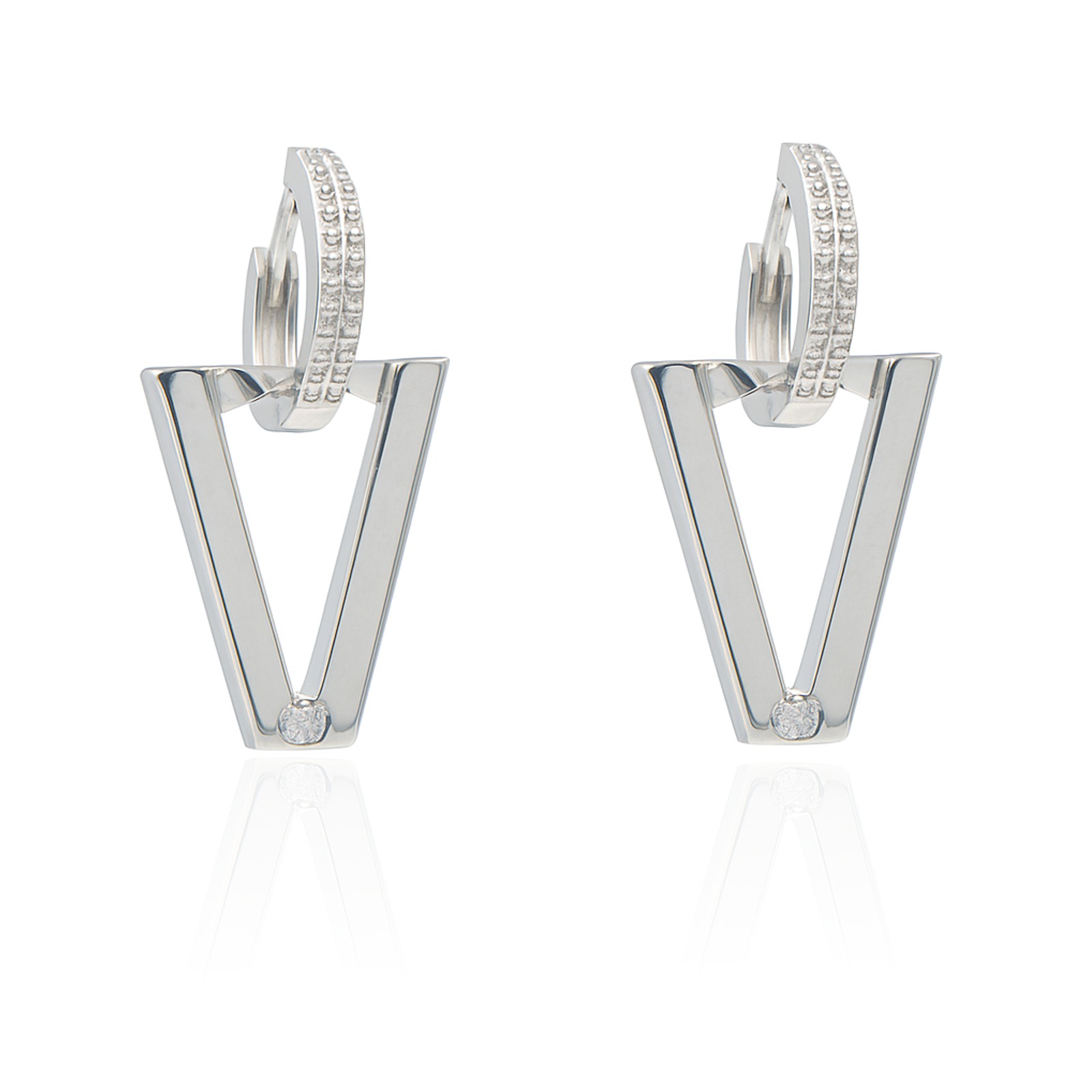 SREBRNE KOLCZYKI KÓŁKO I TRÓJKĄT Z CYRKONIAMI