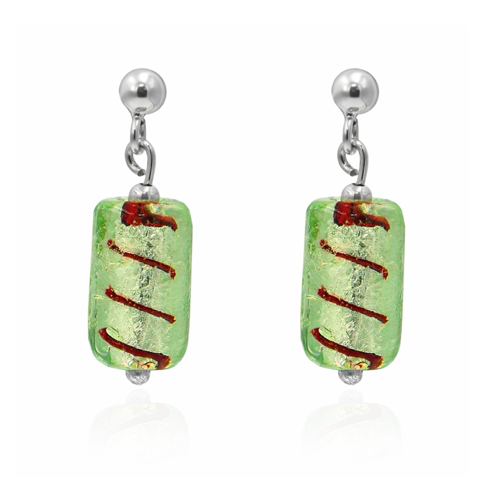 Wiszące srebrne kolczyki z zielonym szkłem murano