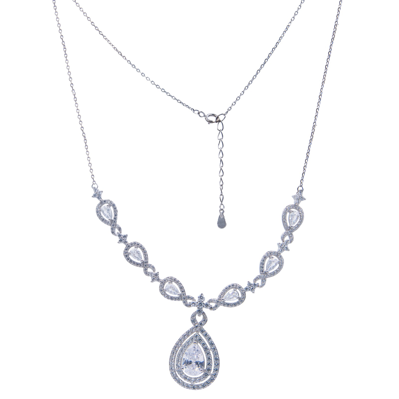 OKAZAŁA ŚLUBNA KOLIA ZE SREBRA Z CYRKONIAMI
