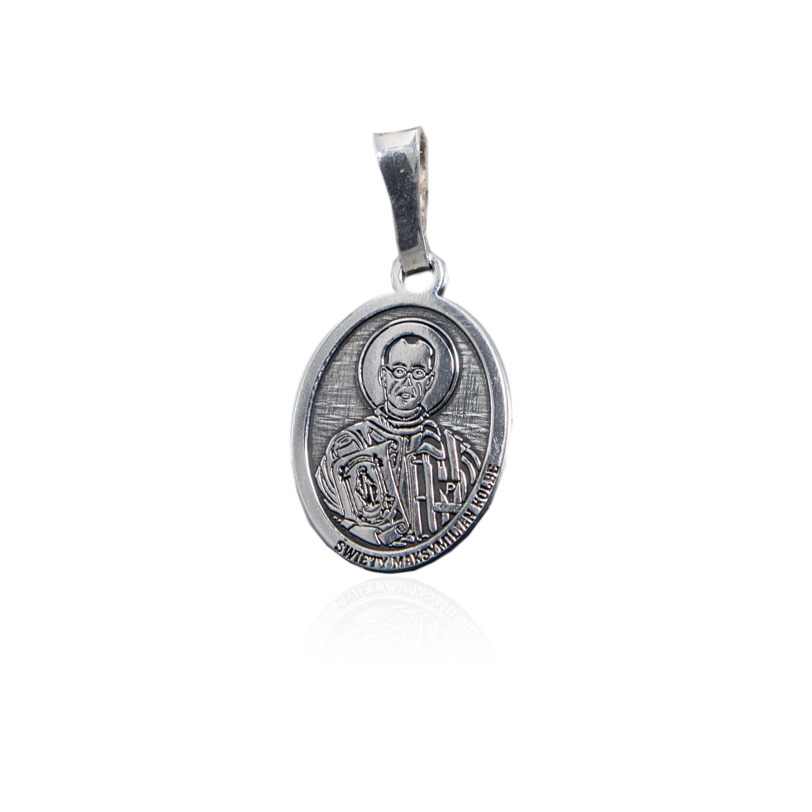 SREBRNY DWUSTRONNY MEDALIK ŚW. MAKSYMILIAN KOLBE WYKONANY ZE SREBRA