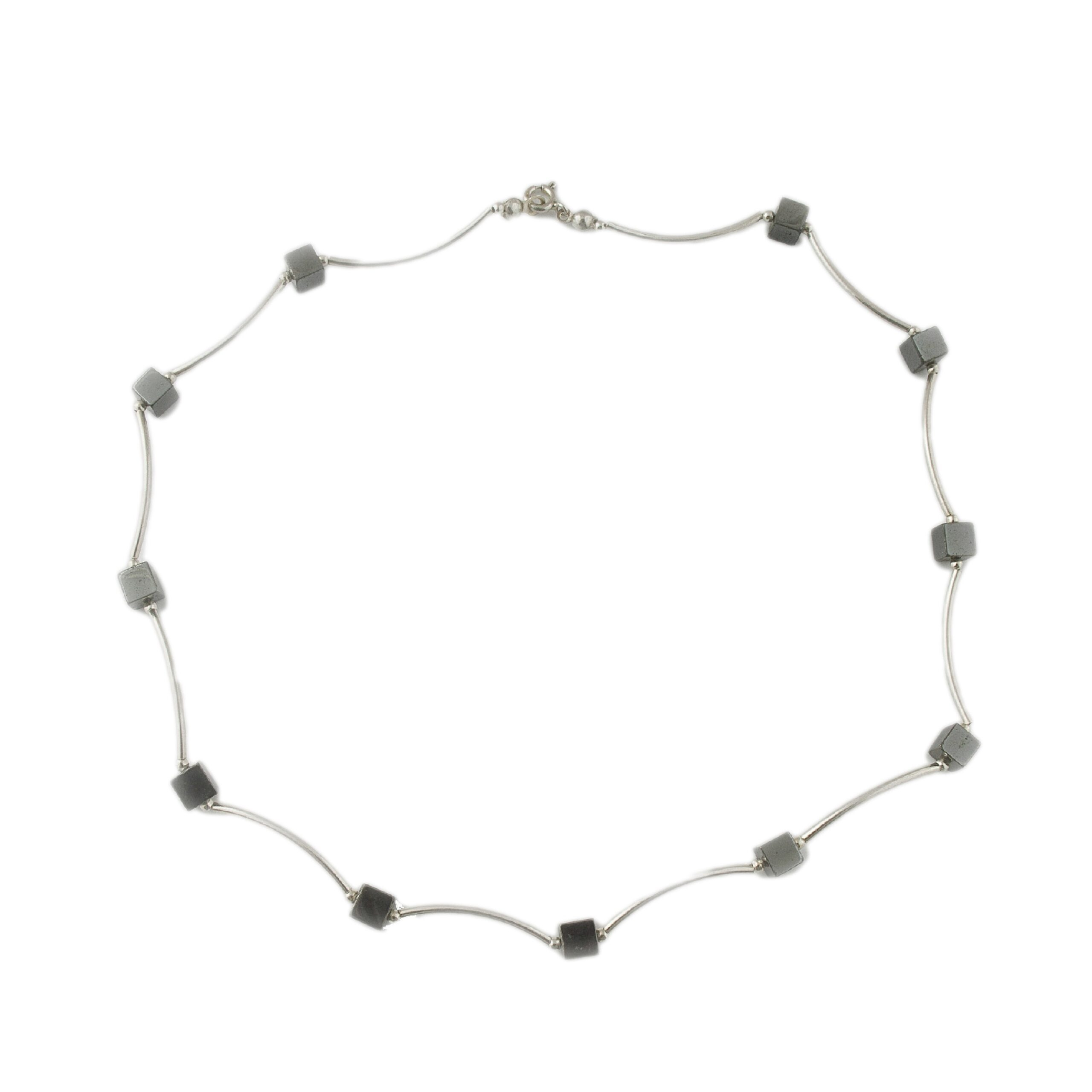 NASZYJNIK Z HEMATYTEM I SREBRNYMI ELEMENTAMI
