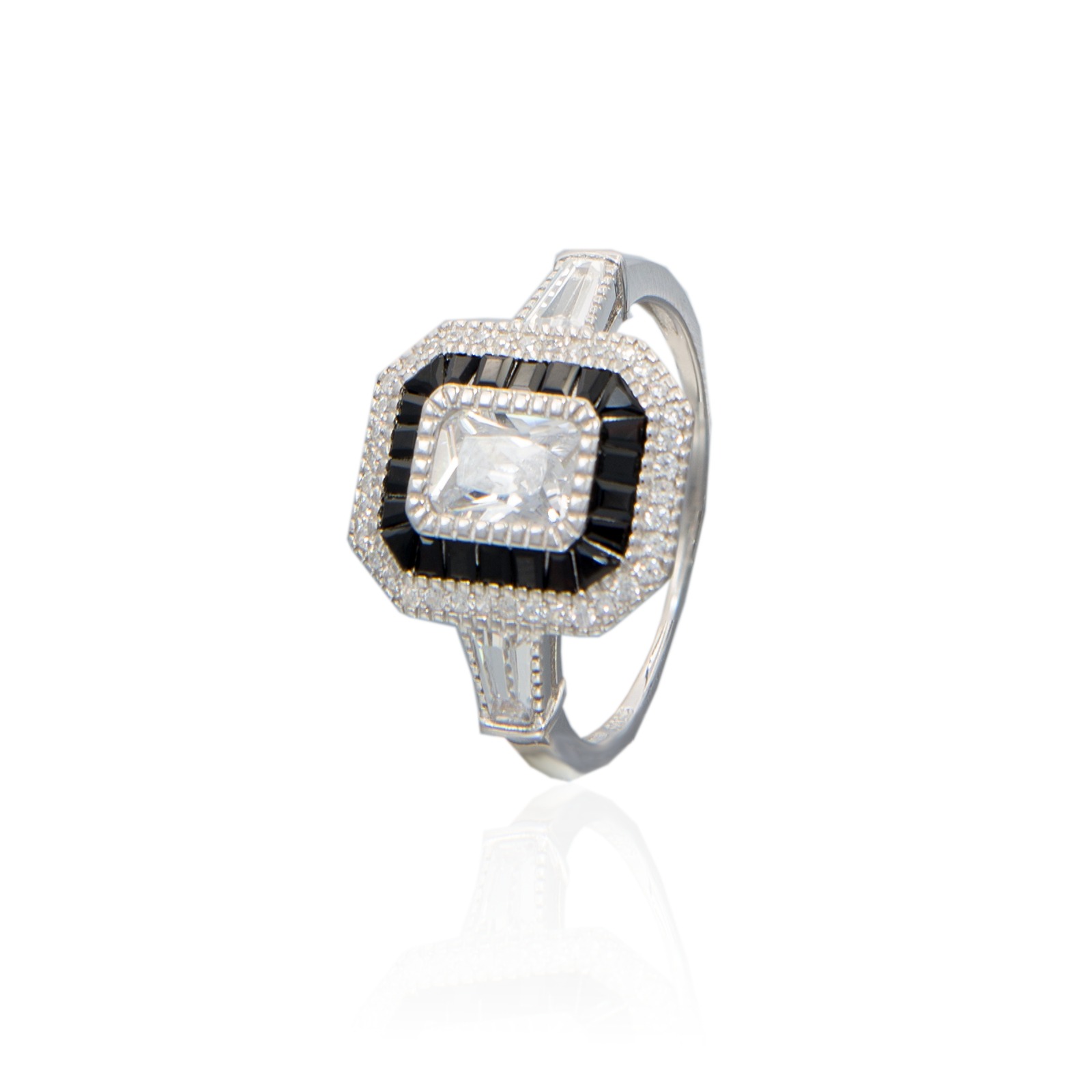 PIĘKNY SREBRNY PIERŚCIONEK Z ONYKSAMI I CYRKONIAMI
