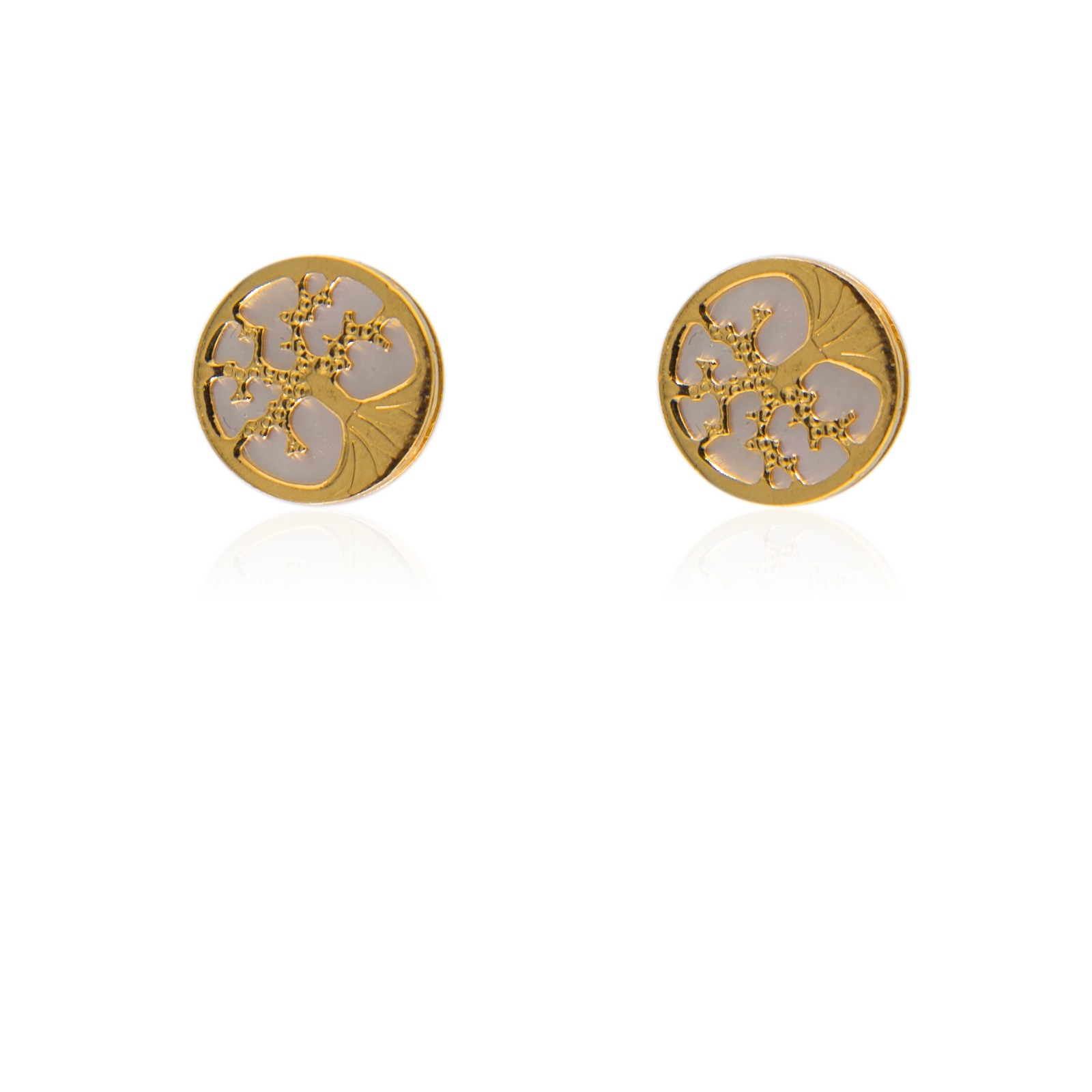 KOLCZYKI DRZEWKO SZCZĘŚCIA Z MASĄ PERŁOWĄ WYKONANE Z ŻÓŁTEGO ZŁOTA