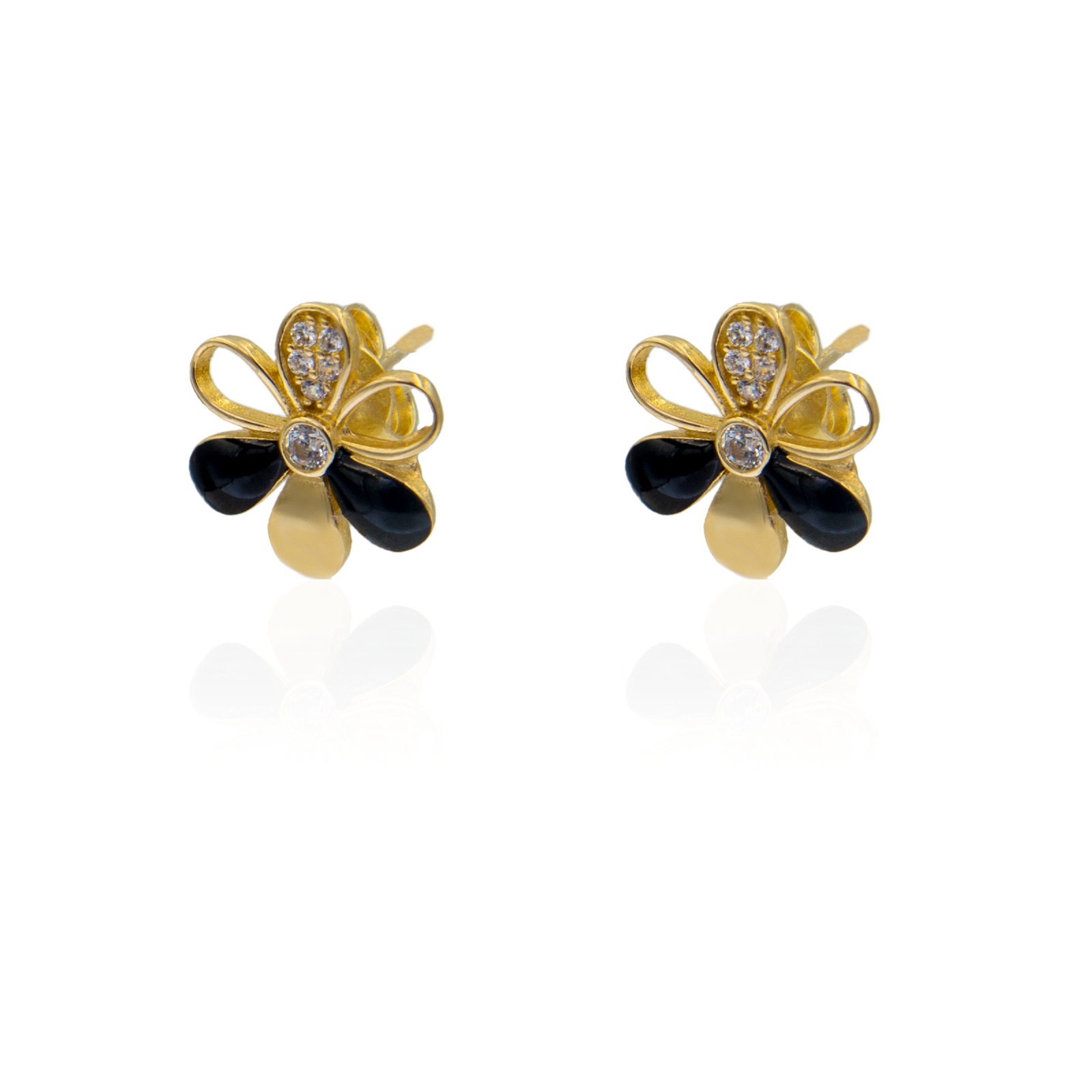 KOLCZYKI KWIATY Z CZARNĄ MASĄ JUBILERSKĄ I CYRKONIAMI WYKONANE Z ŻÓŁTEGO ZŁOTA