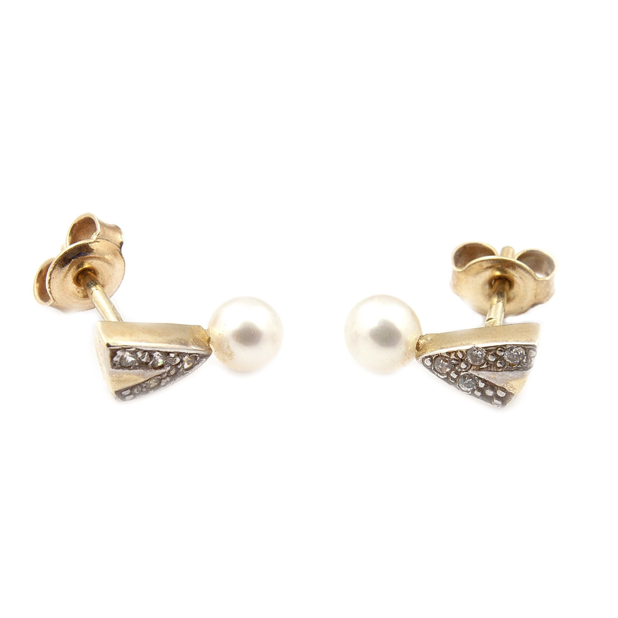 KOLCZYKI Z ŻÓŁTEGO I BIAŁEGO ZŁOTA Z BIAŁĄ PEREŁKĄ I CYRKONIAMI