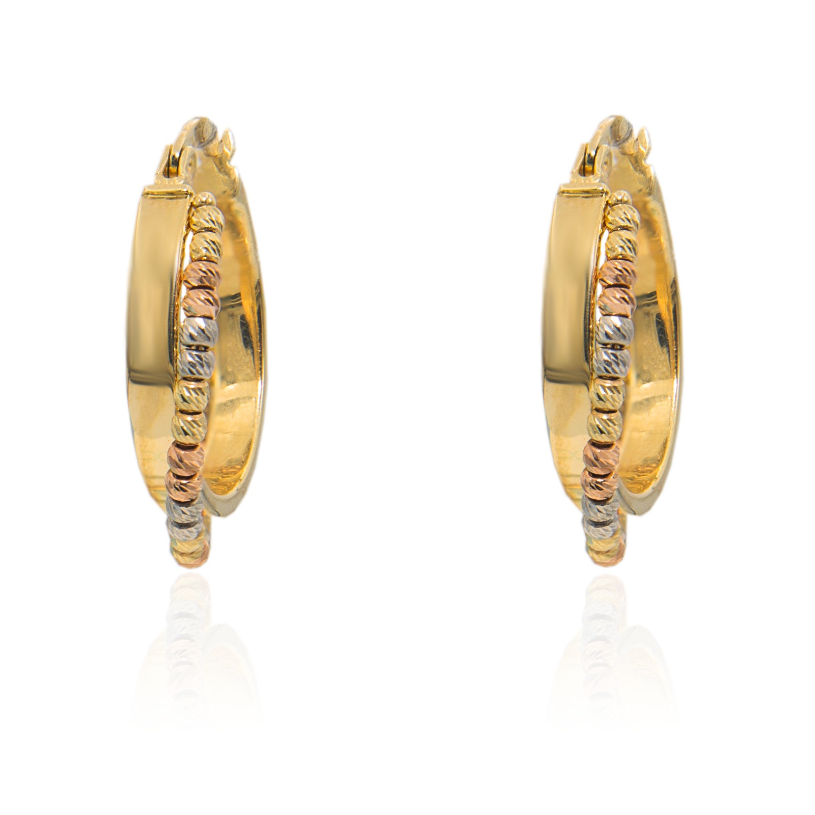 NIEPOWTARZALNE KOLCZYKI KÓŁKA WYKONANE Z ŻÓŁTEGO, BIAŁEGO I RÓŻOWEGO ZŁOTA