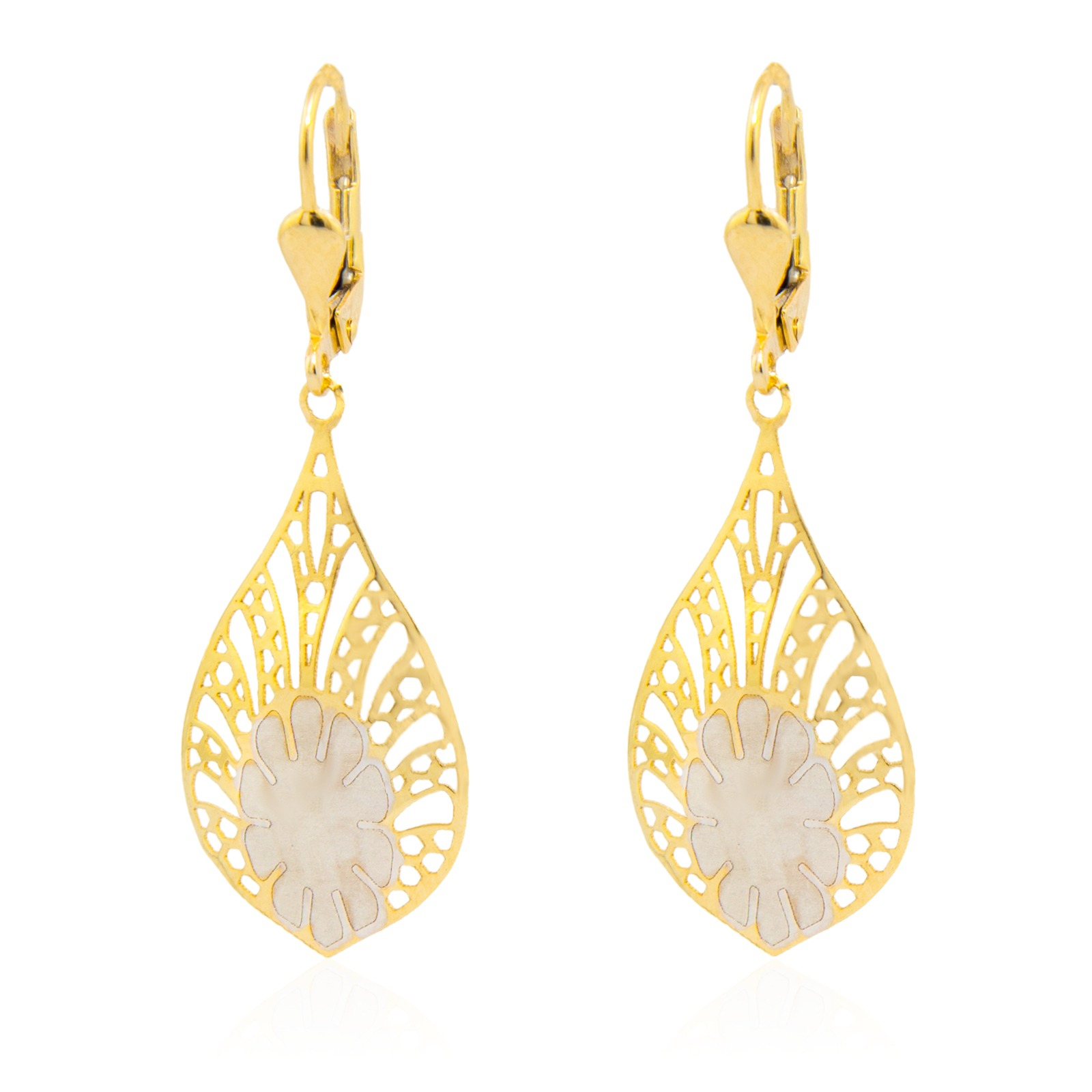 WISZĄCE KOLCZYKI WYKONANE Z ŻÓŁTEGO I BIAŁEGO ZŁOTA