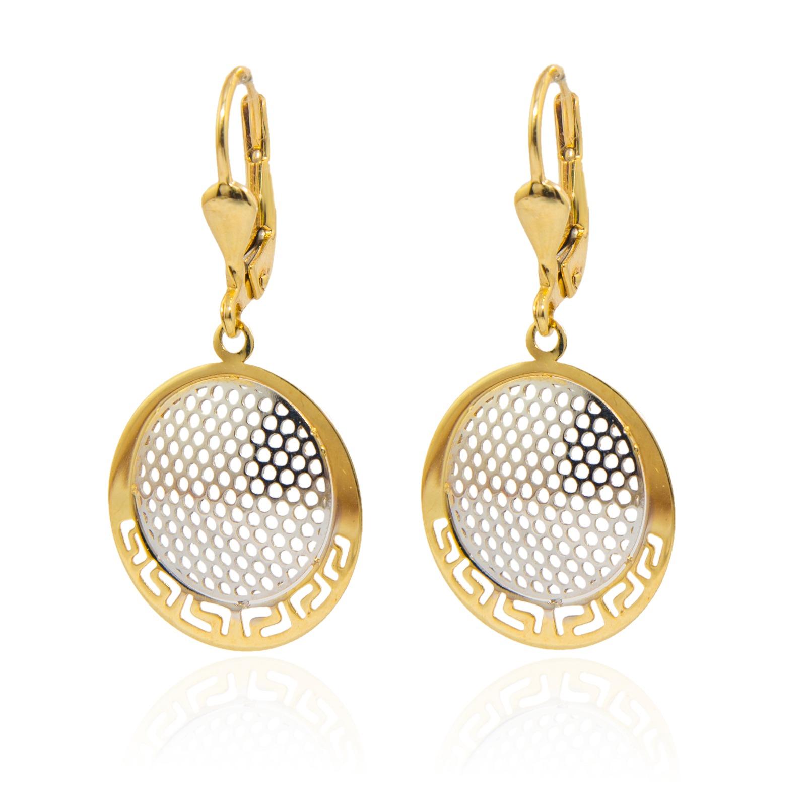 WISZĄCE KOLCZYKI Z GRECKIM WZOREM WYKONANE Z ŻÓŁTEGO I BIAŁEGO ZŁOTA