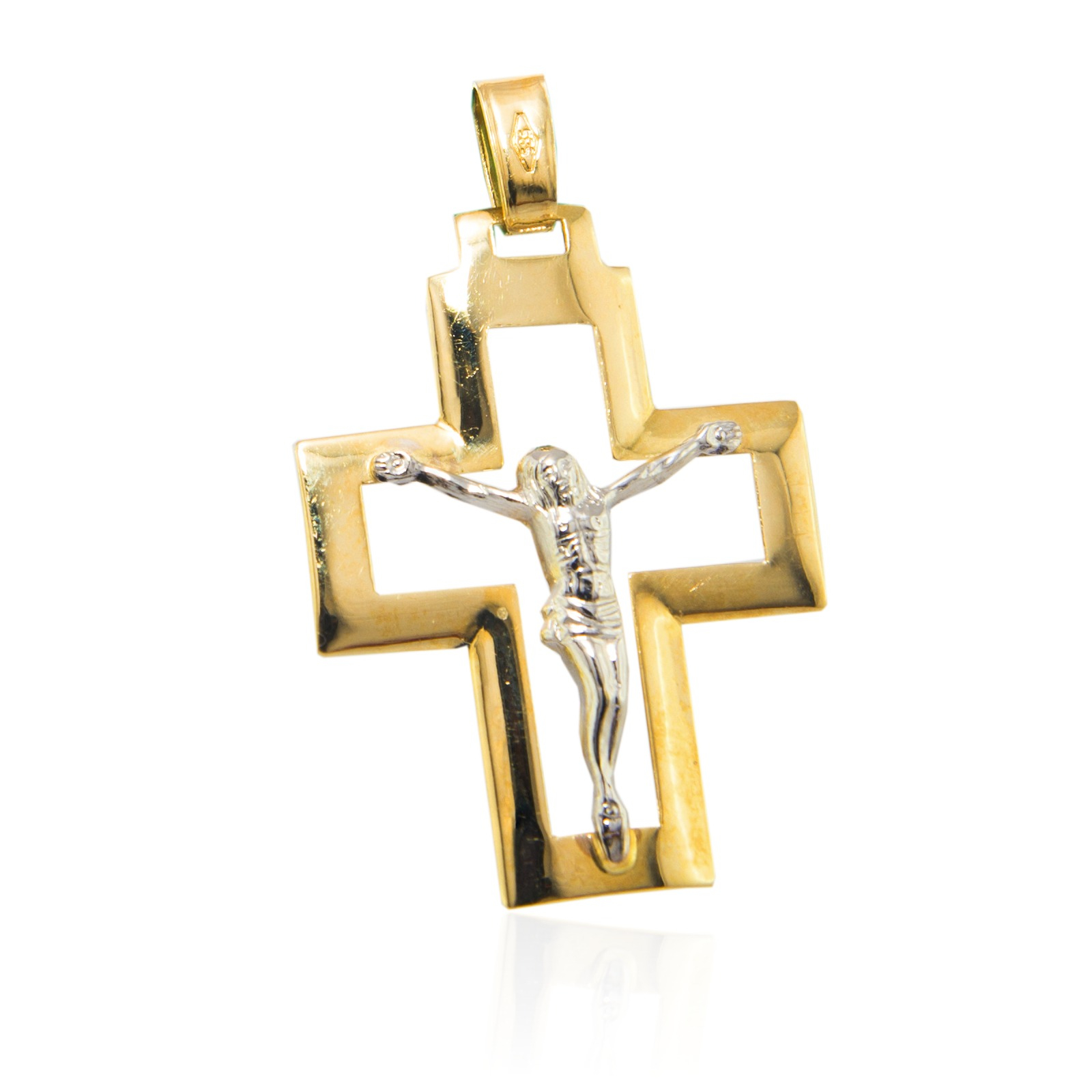 ZŁOTY KRZYŻ Z PANEM JEZUSEM WYKONANY Z ŻÓŁTEGO I BIAŁEGO ZŁOTA