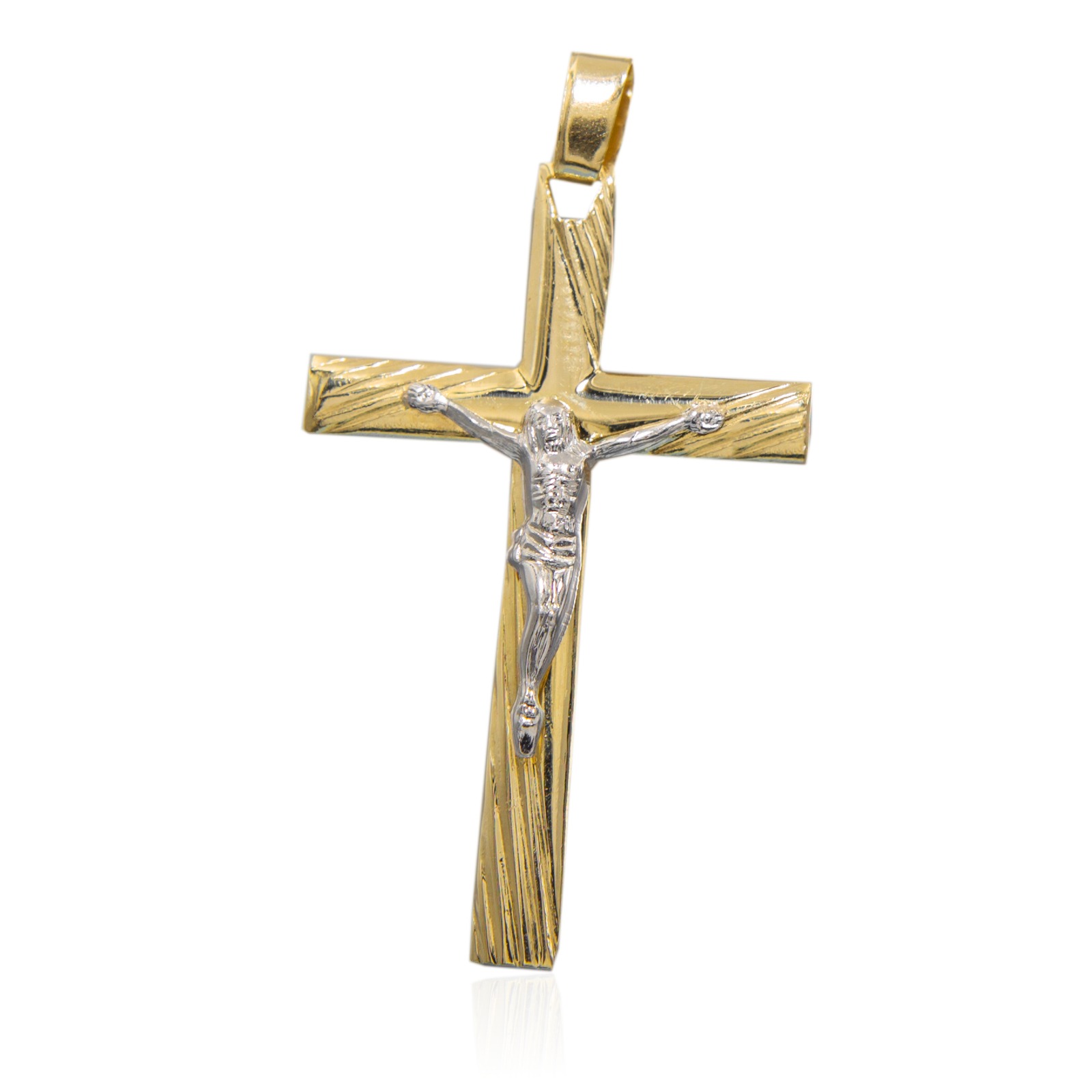 ZŁOTY KRZYŻ Z PANEM JEZUSEM WYKONANY Z ŻÓŁTEGO I BIAŁEGO ZŁOTA