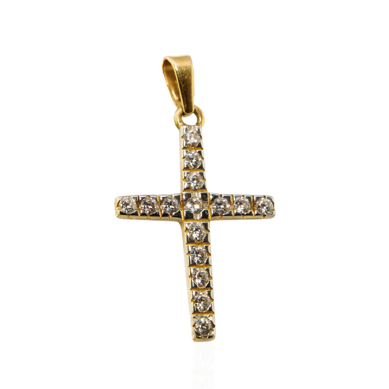 KRZYŻYK WYKONANY Z ŻÓŁTEGO I BIAŁEGO ZŁOTA Z CYRKONIAMI