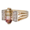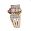 PIERŚCIONEK Z ŻÓŁTEGO ZŁOTA Z NIEPOWTARZALNYM KAMIENIEM I CYRKONIAMI