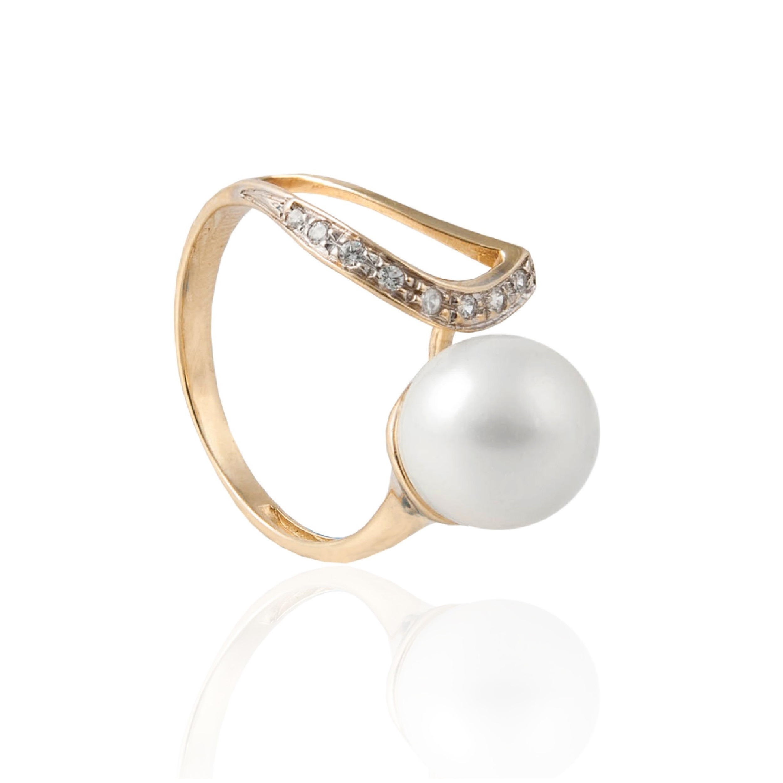 PIERŚCIONEK Z ŻÓŁTEGO ZŁOTA Z PERŁĄ I CYRKONIAMI