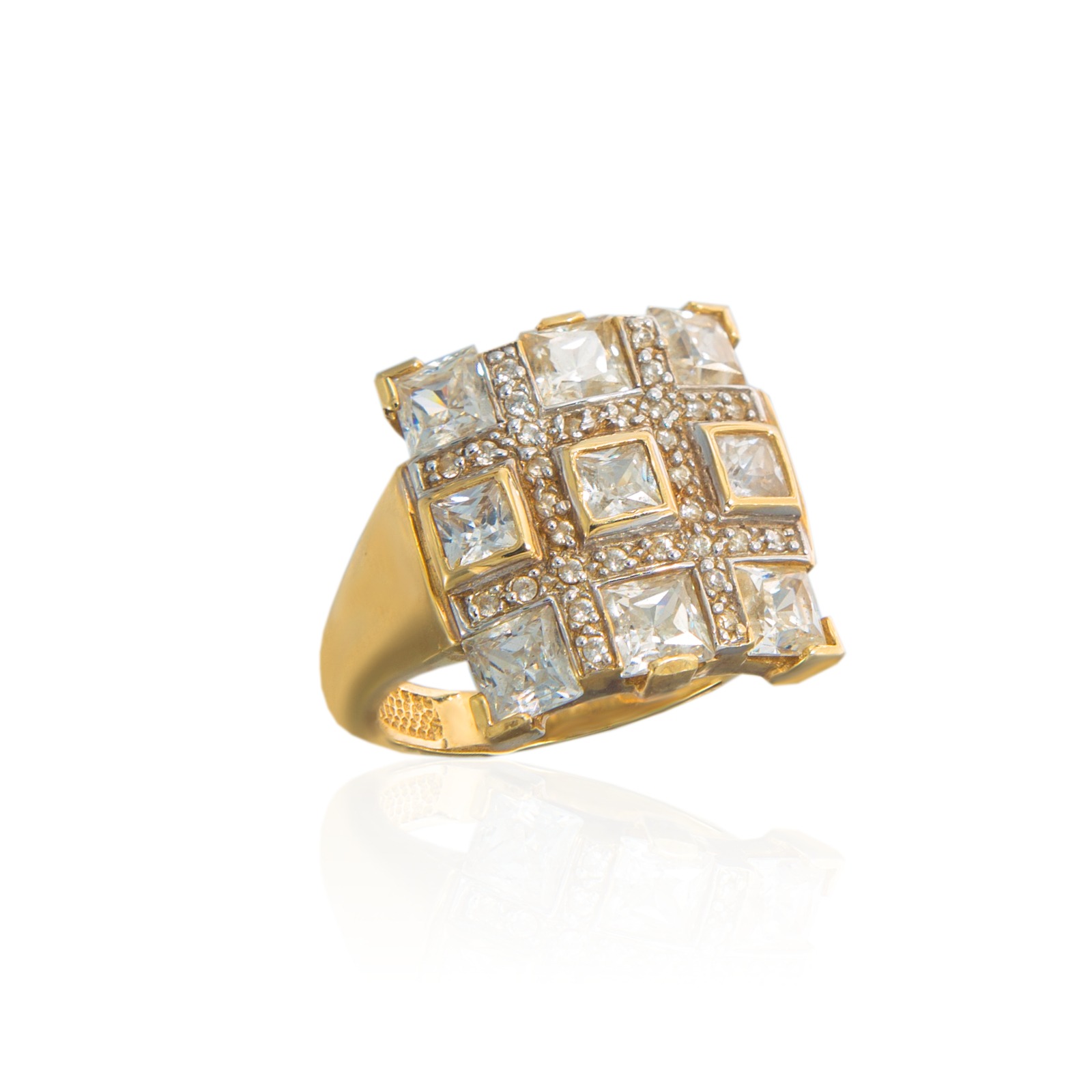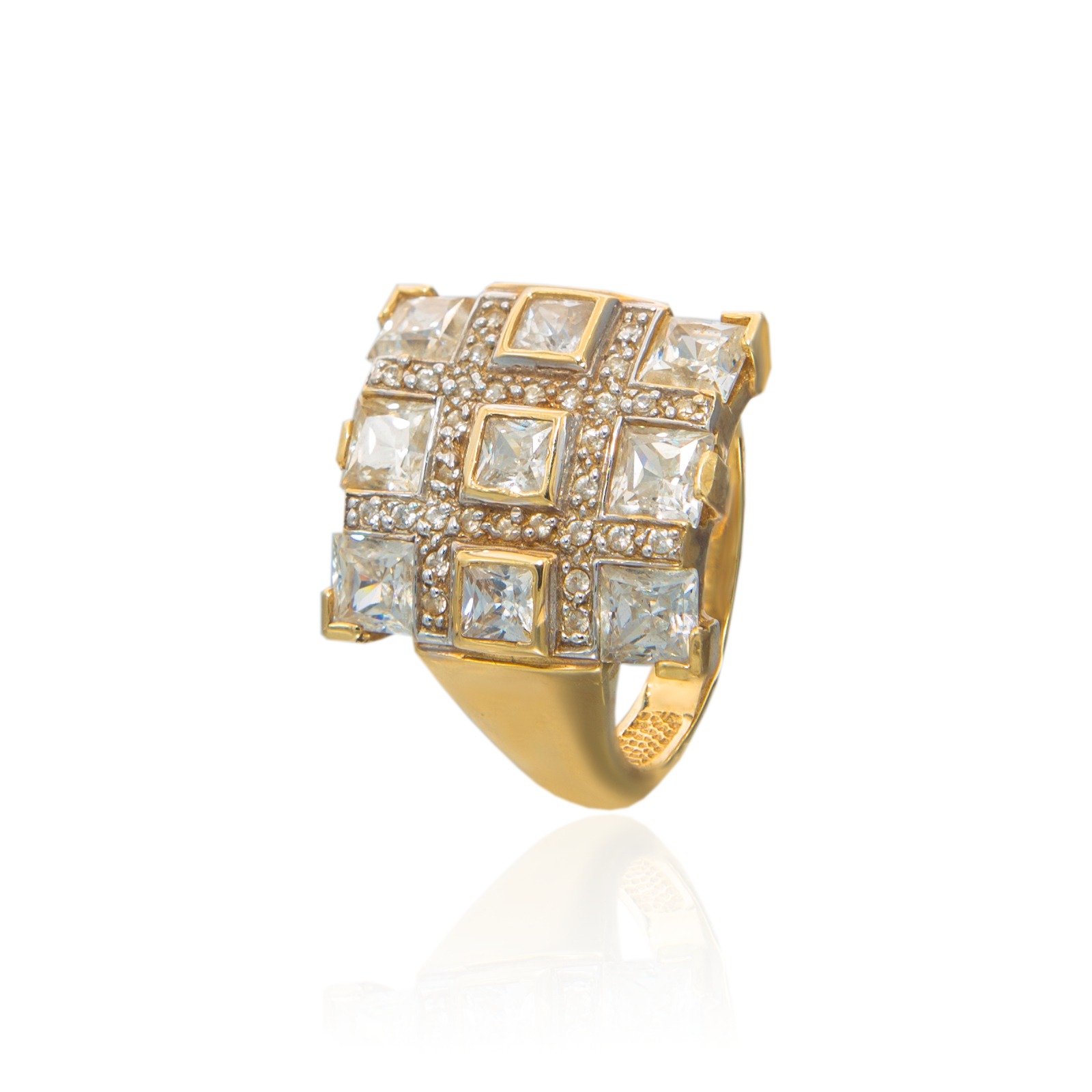 OKAZAŁY PIERŚCIONEK Z ŻÓŁTEGO I BIAŁEGO ZŁOTA Z CYRKONIAMI