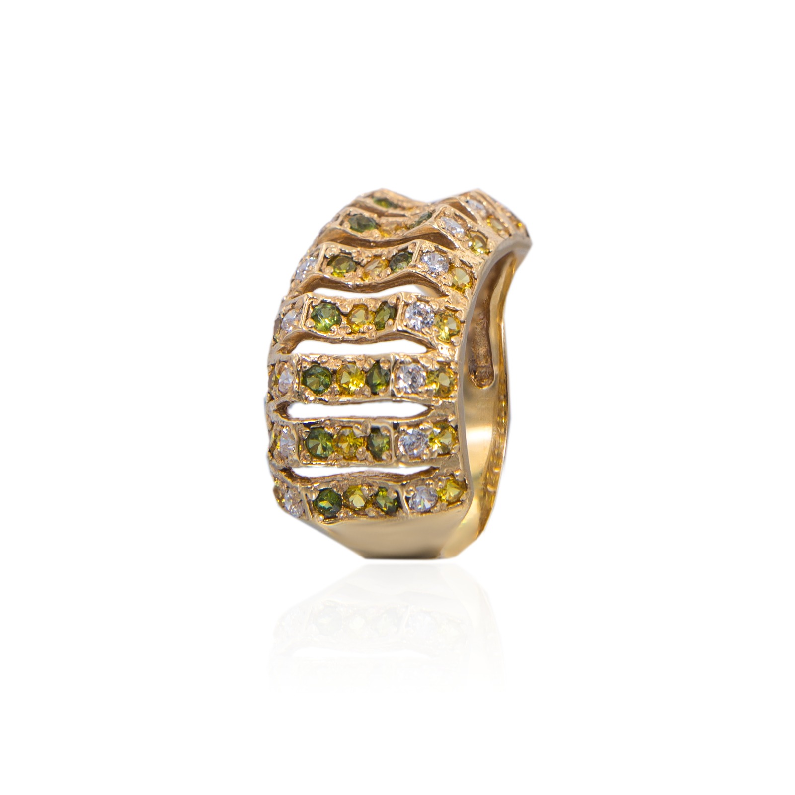 OKAZAŁY PIERŚCIONEK Z ŻÓŁTEGO Z OLIWINAMI, CYTRYNAMI I CYRKONIAMI