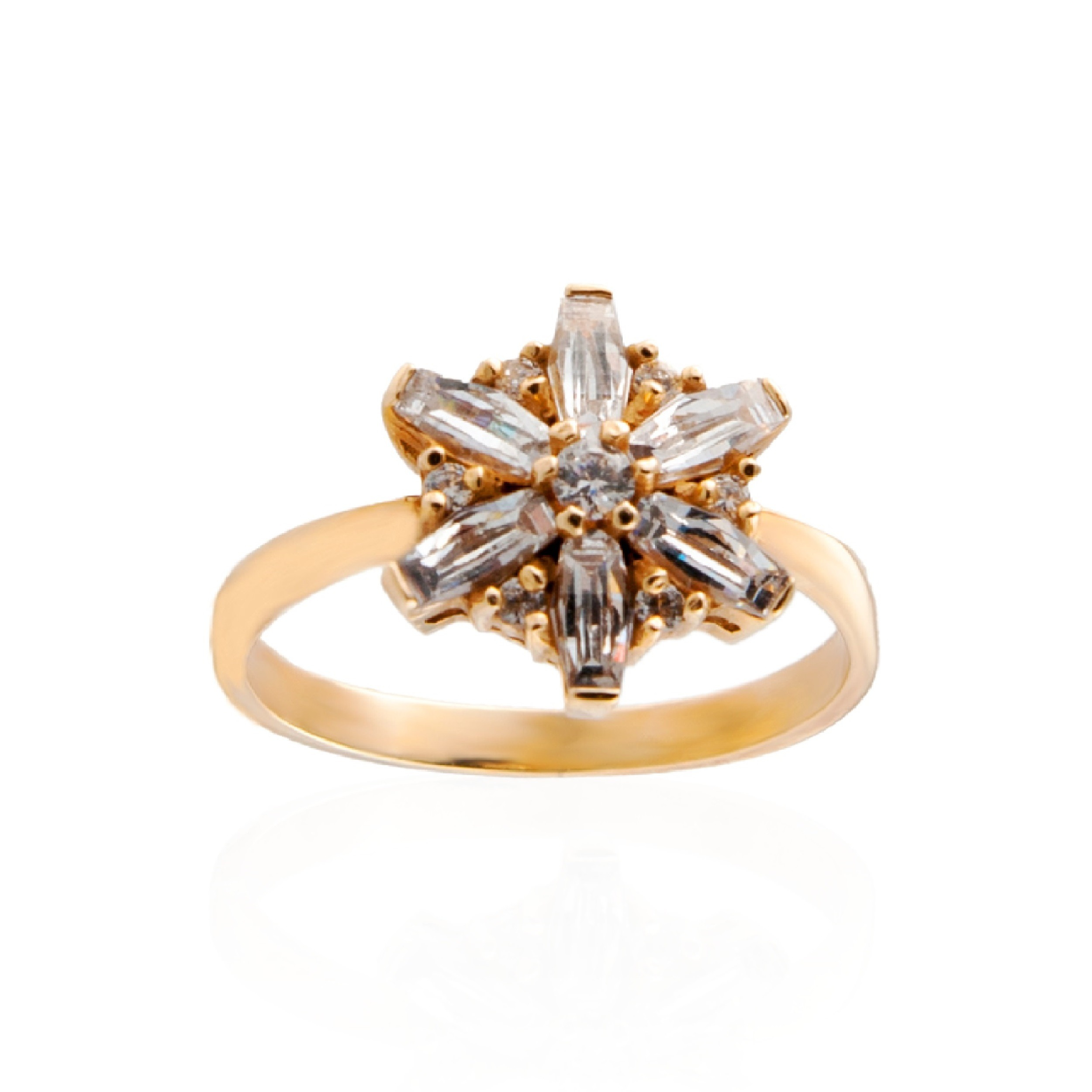PIERŚCIONEK KWIAT Z ŻÓŁTEGO ZŁOTA Z CYRKONIAMI