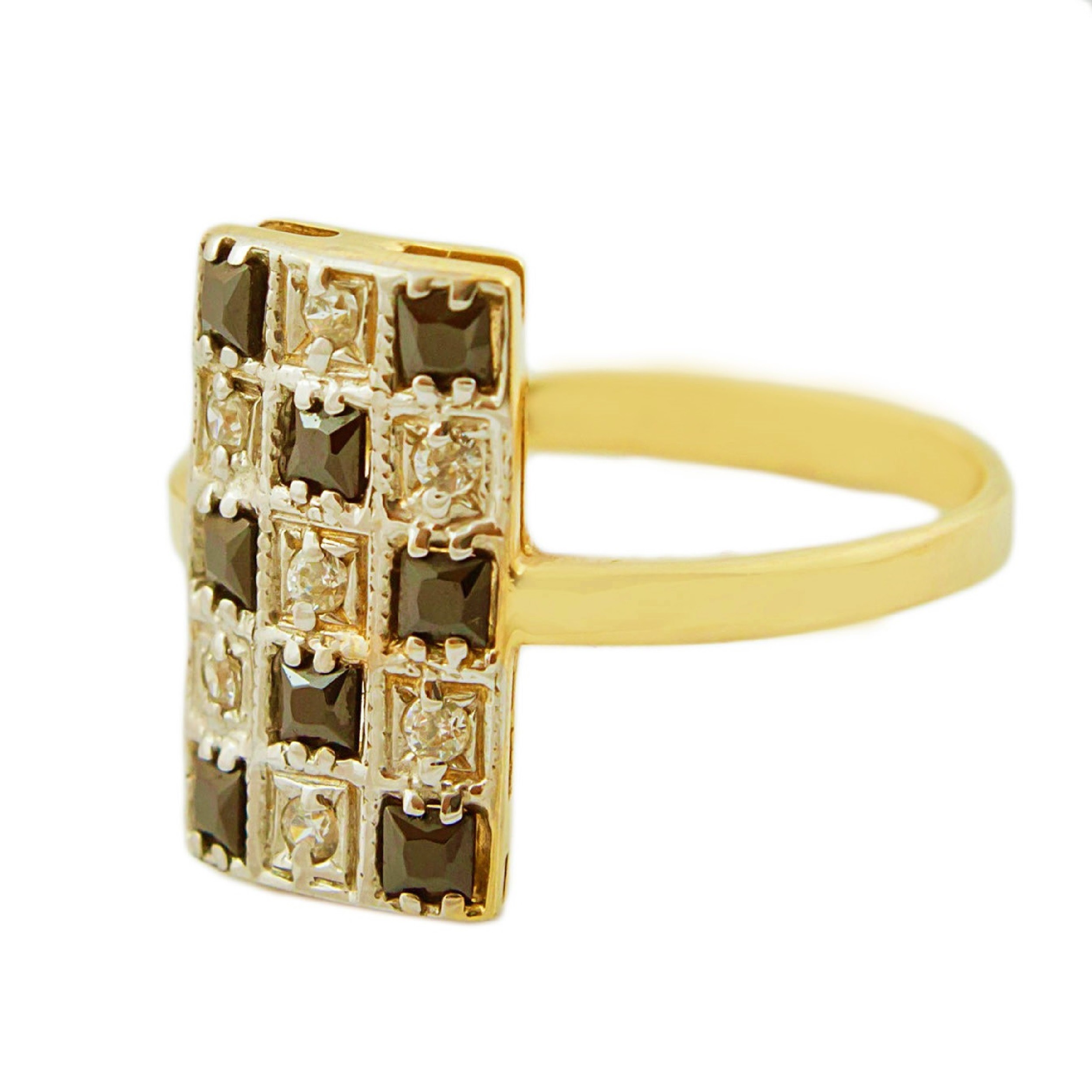 PIERŚCIONEK Z ŻÓŁTEGO I BIAŁEGO ZŁOTA Z CYRKONIAMI I ONYKSAMI