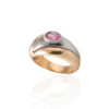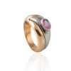 OKAZAŁY PIERŚCIONEK Z ŻÓŁTEGO I BIAŁEGO ZŁOTA Z RÓŻOWĄ CYRKONIĄ