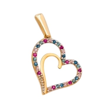 Złoty wisiorek serce z żółtego i białego złota z kolorowymi cyrkoniami