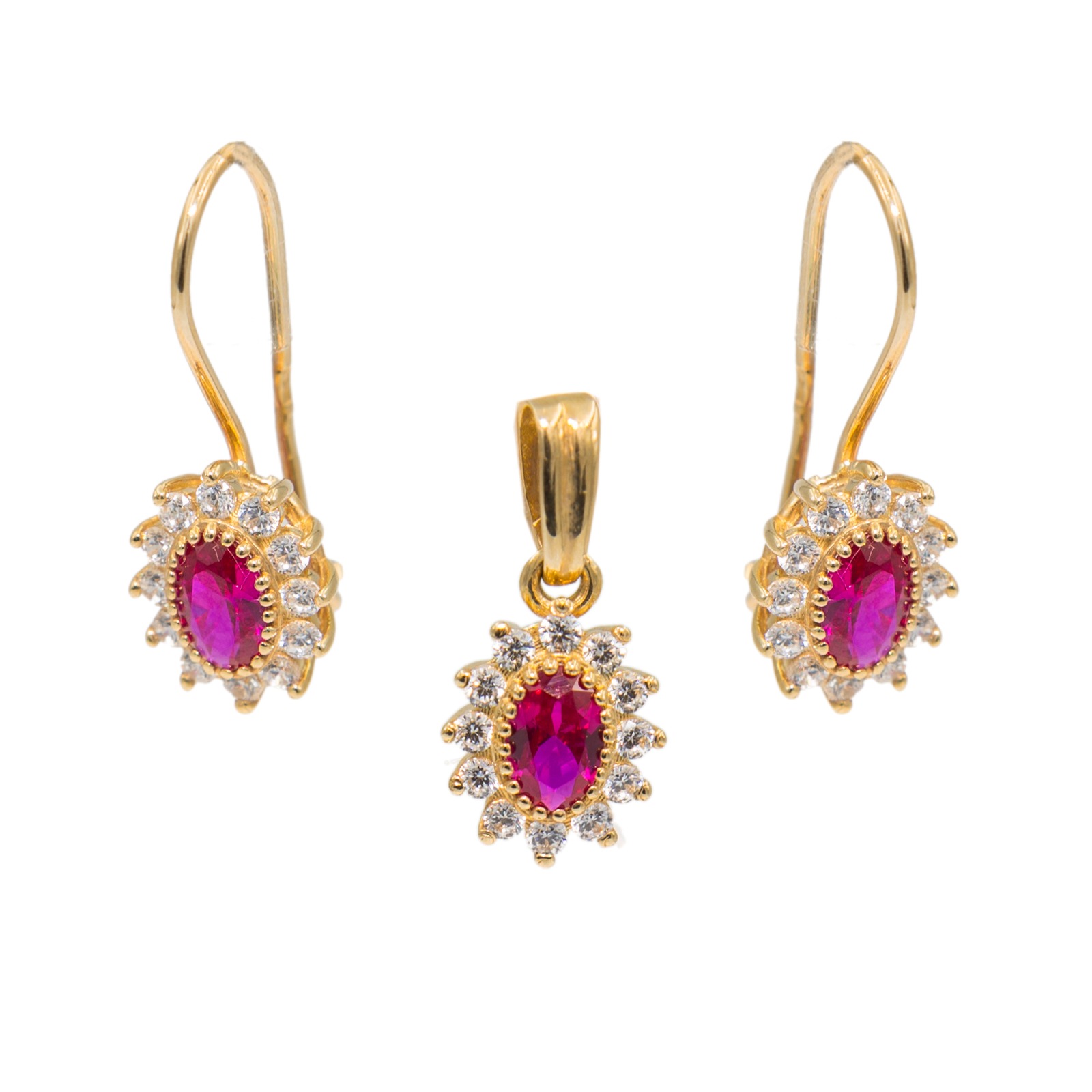 KOMPLET MARKIZY Z ŻÓŁTEGO ZŁOTA Z CYRKONIAMI I SYNTETYCZNYMI RUBINAMI