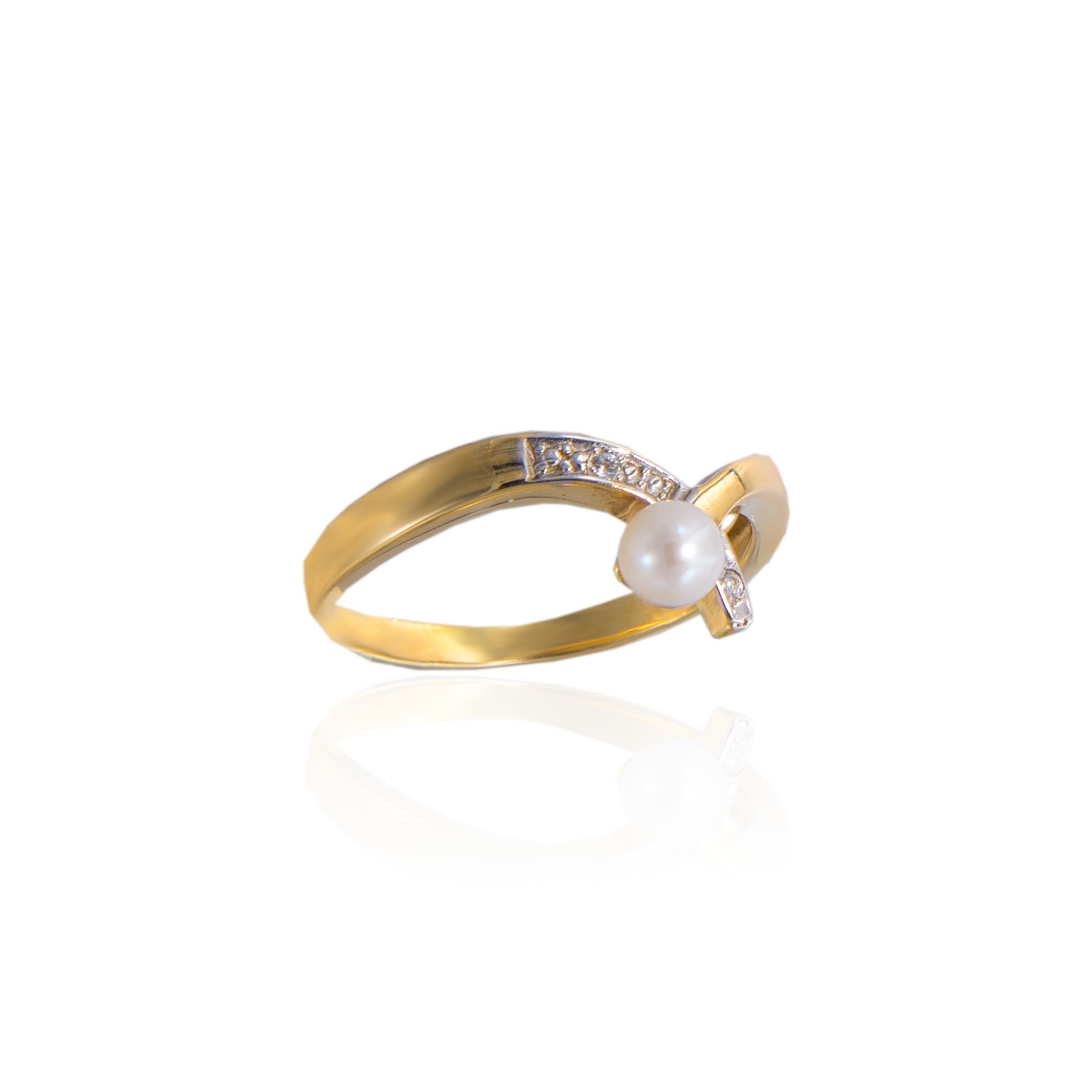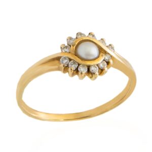 PIERŚCIONEK Z ŻÓŁTEGO ZŁOTA Z PERŁĄ I CYRKONIAMI
